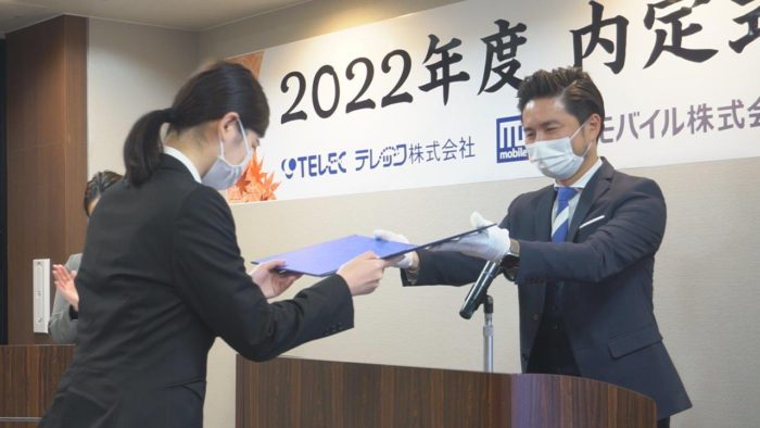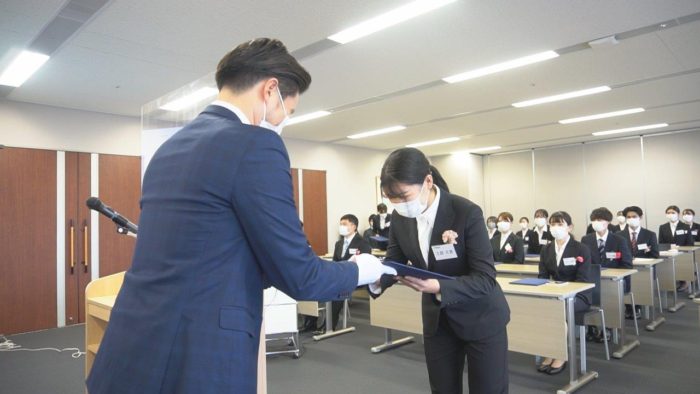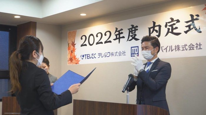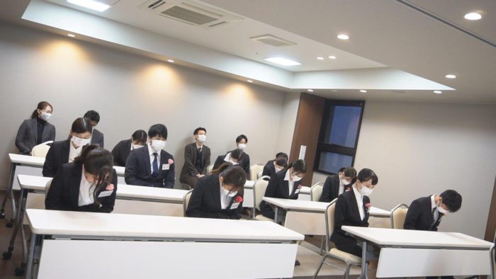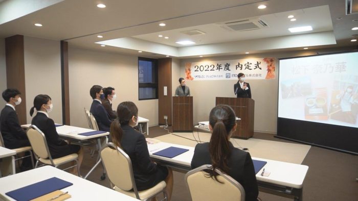 内定式は皆さまに集まってもらい、コロナ対策を行いながら