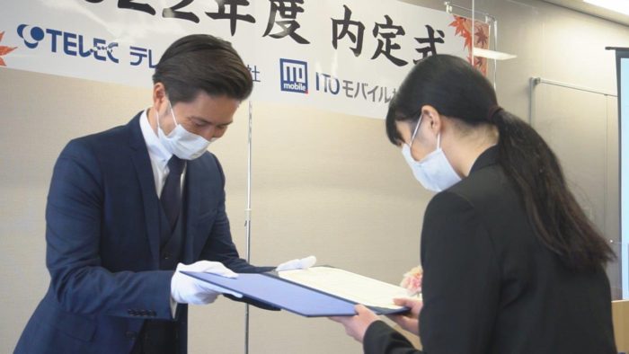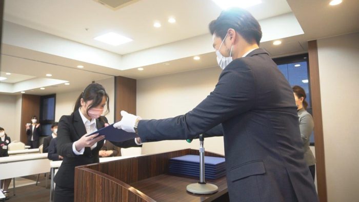 代表の伊藤より内定者の方々に直接受け取っていただきます。