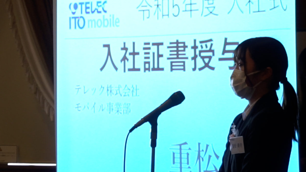 入社証書を受け取った後、1人1人決意表明をしていただきます!
