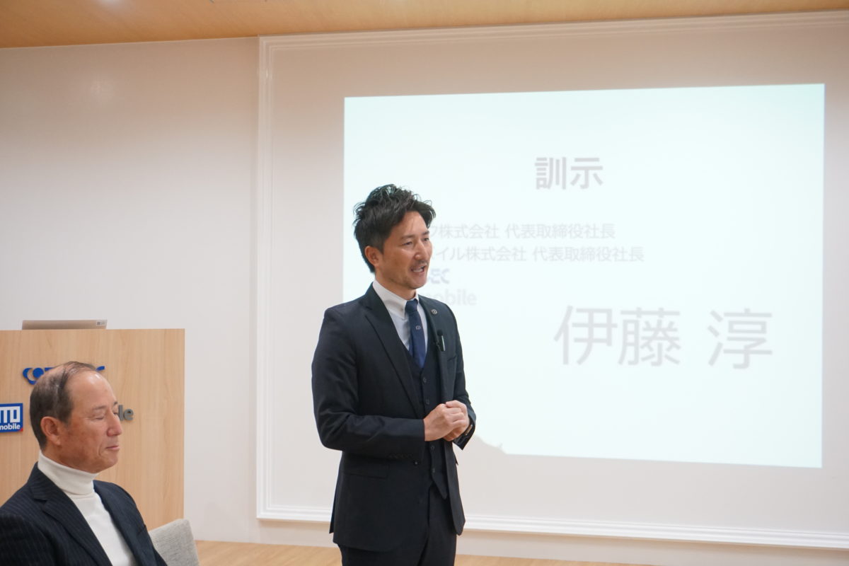 就任者挨拶では足立より、「同期の濱田、そして店長の平森店長とともに、これからも成長を続け、ソフトバンク八幡市役所前でしっかりと実績を出していきます」と、力強く熱意あふれる言葉が述べられました。