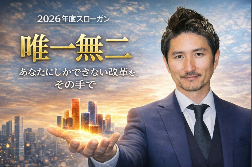 冒頭、代表より年頭挨拶および経営基本方針が発表され、2026年度の経営スローガンが掲げられました。